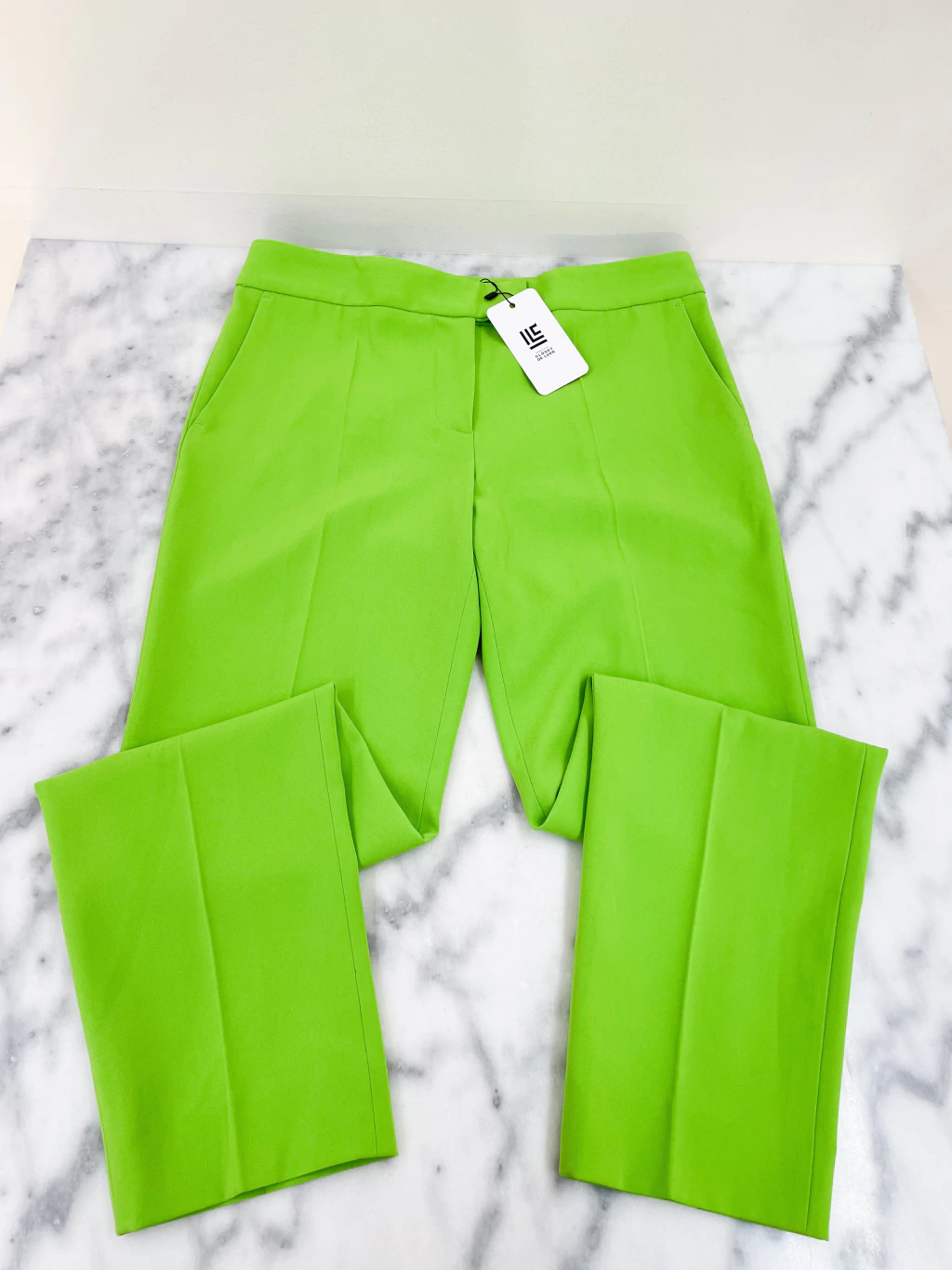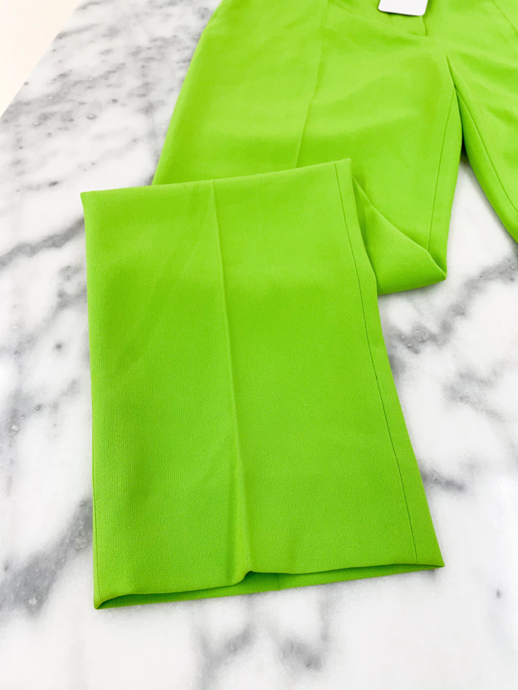 Calça Moschino Cheap and Chic de tecido na cor verde limão, bolsos laterais e fechamento por zíper e botão.