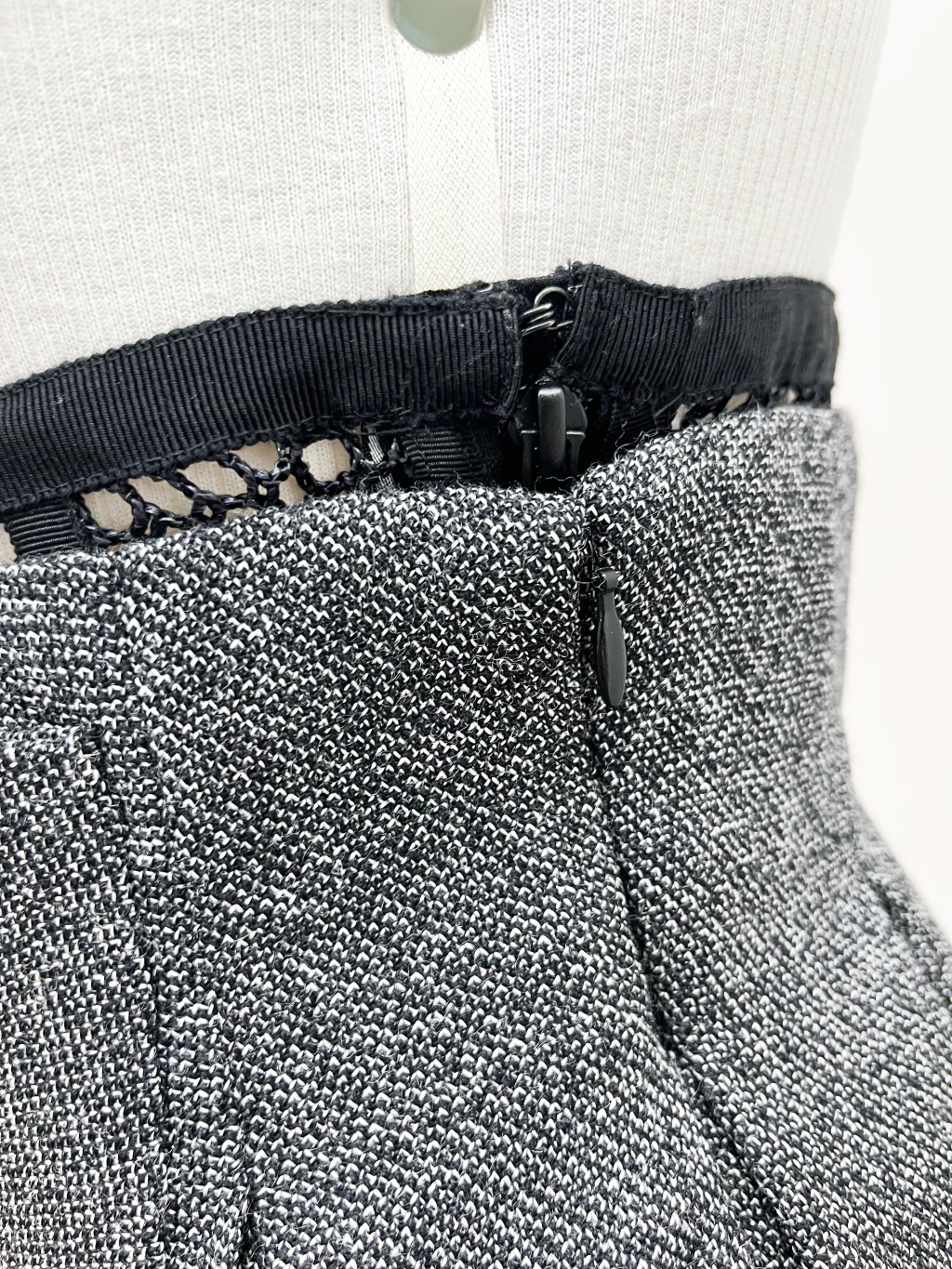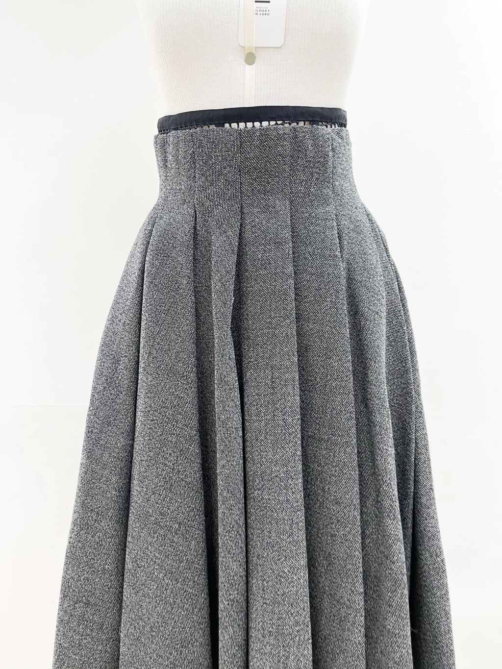 Saia Dior Wool Maxi Skirt de tecido cinza mescla, interno na cintura em tecido tela na cor preta, fechamento por zíper e ferragens pretas.