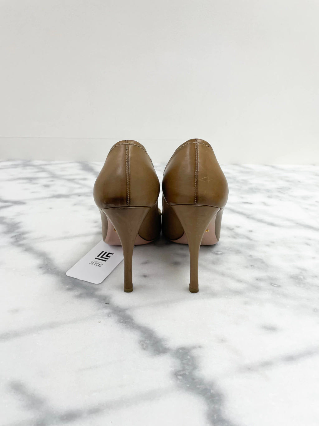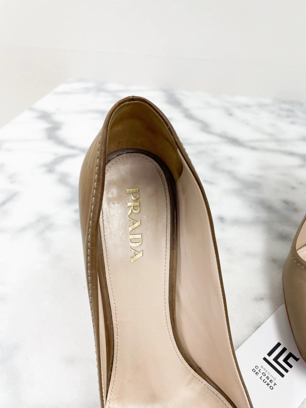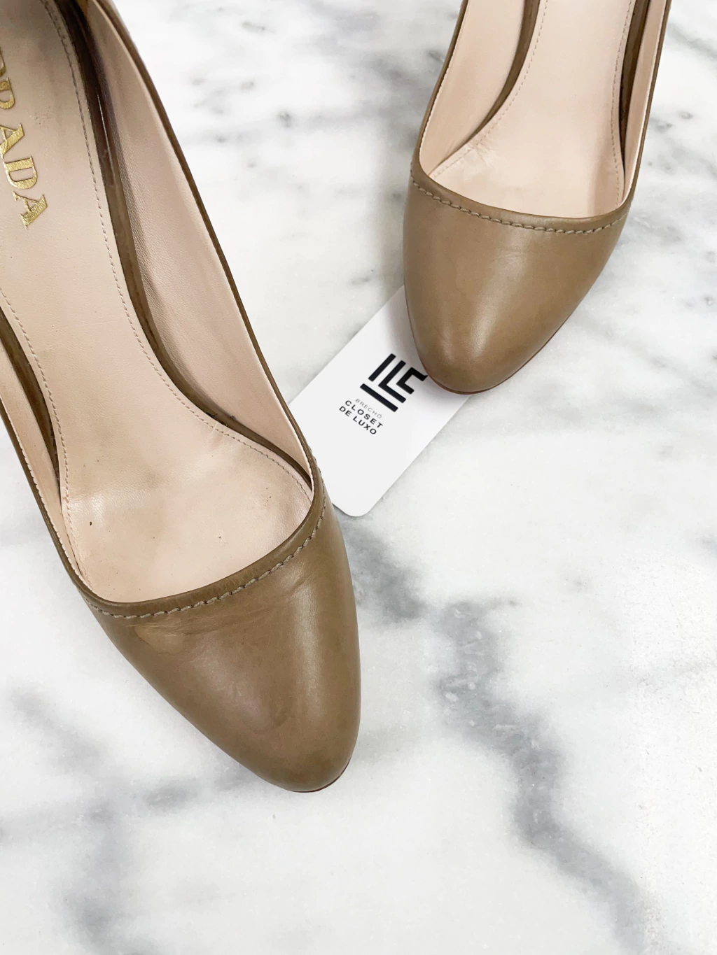 Scarpin Prada Leather de couro na cor marrom com salto alto fino.