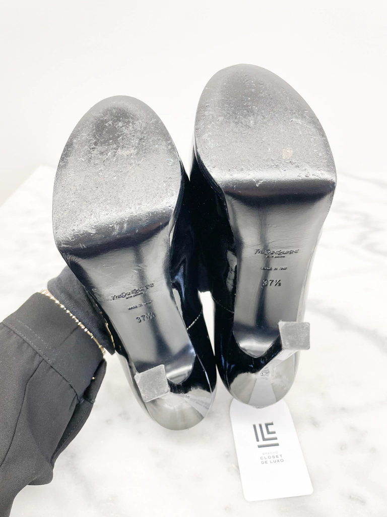 Scarpin Yves Saint Laurent de couro envernizado preto.